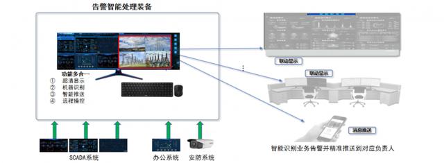 主動敏銳的“信息找人”。系統采用AI技術識別和告警推送,將SCADA等系統的各類告警信息提煉加工,自動判斷警情的級別、類別和責任部門,自動執行預定義的業務處理流程,將告警信息推送給對應的調度員,操作區自動切換成告警主機畫面。