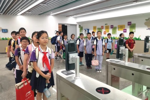 學(xué)校地下停車場專門設(shè)置接送區(qū)、家長等候區(qū)、學(xué)生滯留區(qū),在接送區(qū),廣播播報(bào)放學(xué)信息,電子屏顯示放學(xué)班級,家長刷臉簽到后,學(xué)生刷臉通過閘機(jī)放學(xué)。系統(tǒng)正式運(yùn)行后,在學(xué)生滯留區(qū),學(xué)校還將放置書桌、書架和適合學(xué)生閱讀的書籍,讓暫時滯留的學(xué)生安靜地邊看書邊等候家長。