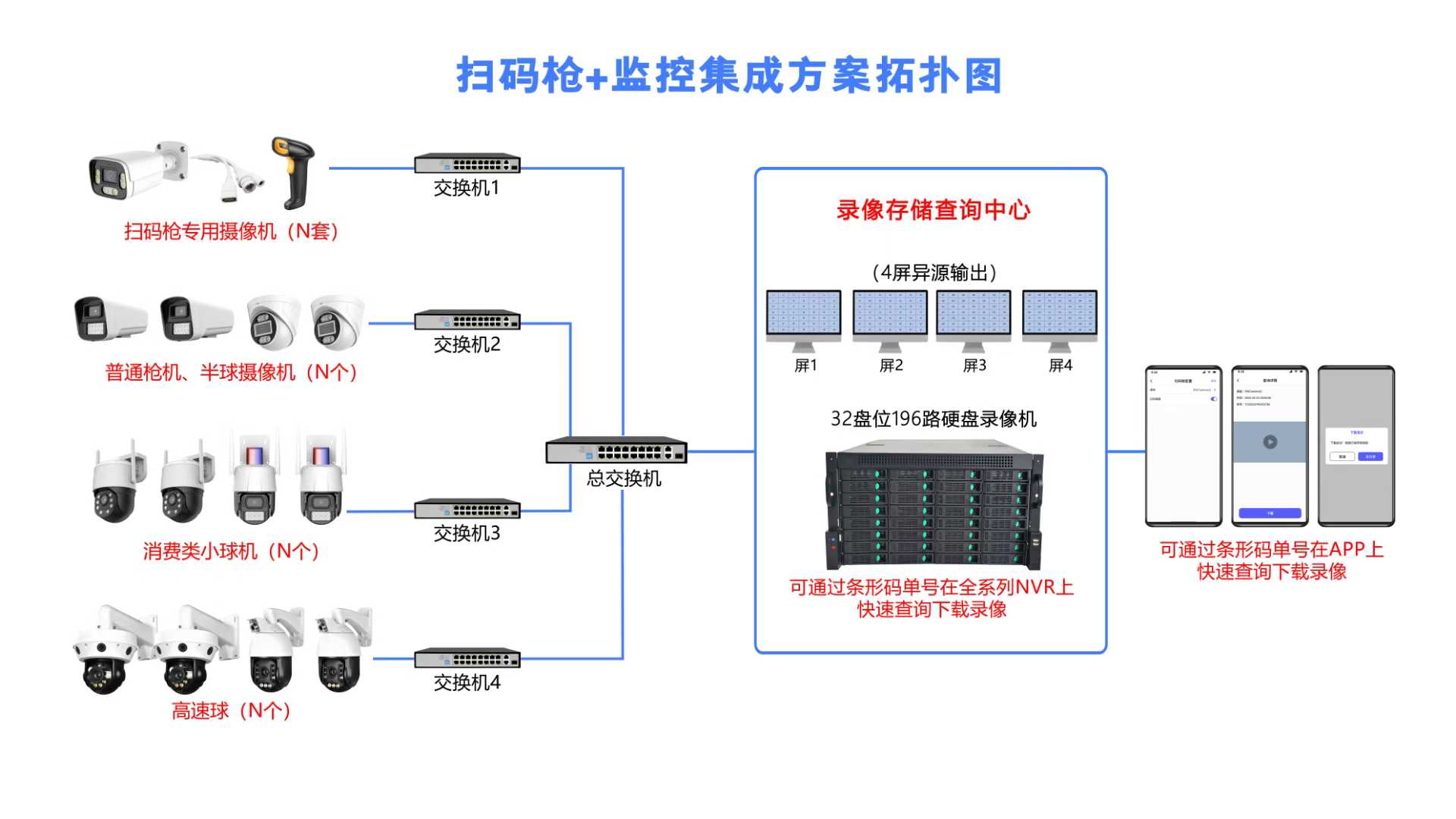 條形碼(掃碼槍+監控攝像頭)快遞打包監控取證系統集成方案